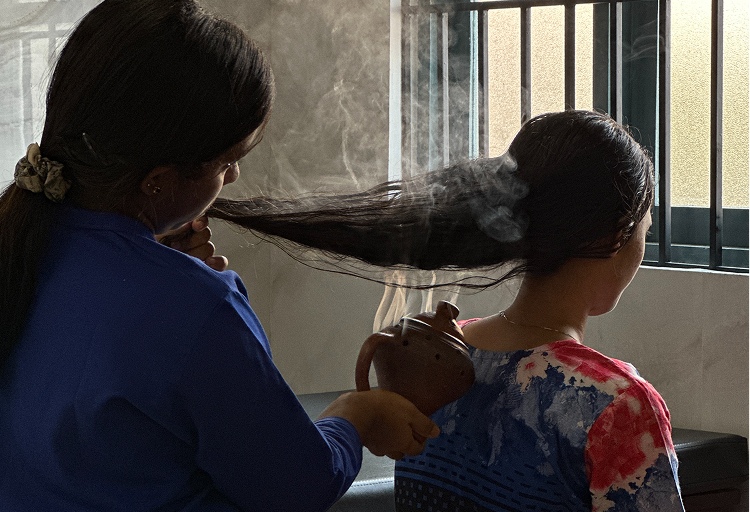 Herbal fumigation therapy used for postnatal care healing and infection prevention, promoting internal cleansing and overall well-being.